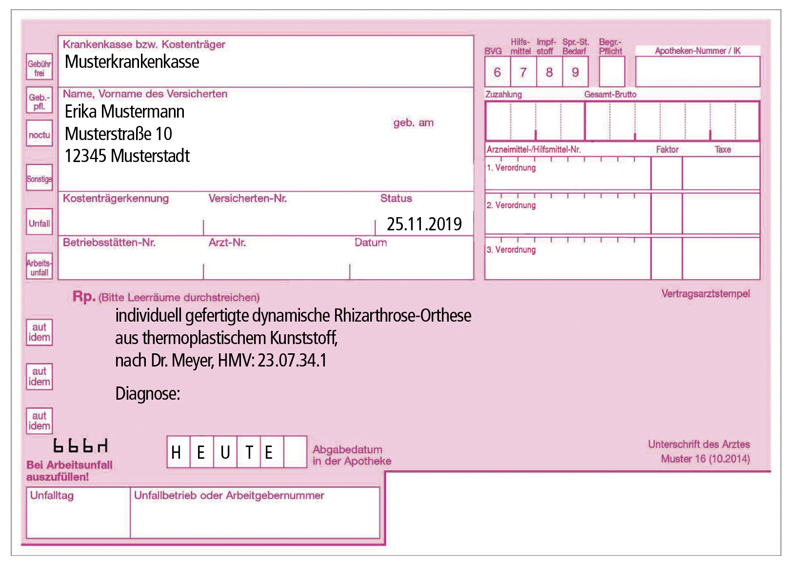 die Hand erst an die Orthese gewöhnen). In den weiteren 5 Monaten wird