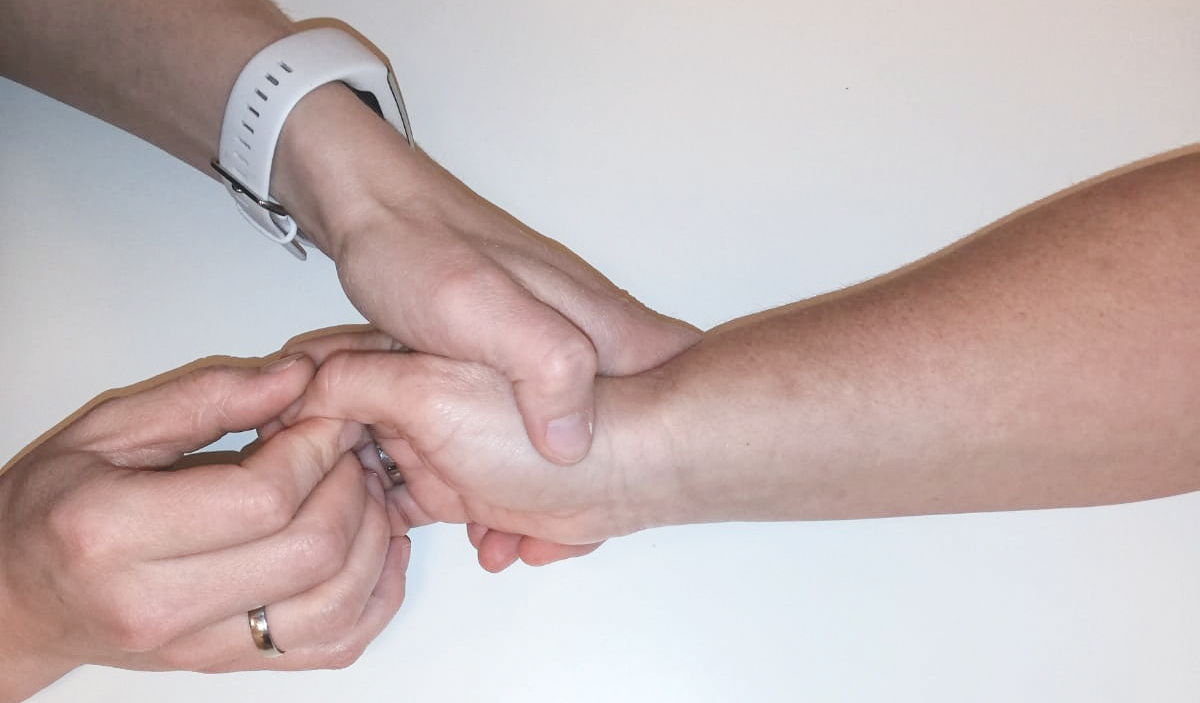 erkrankte Daumensattelgelenk bei jeder Beugung des Daumens ein